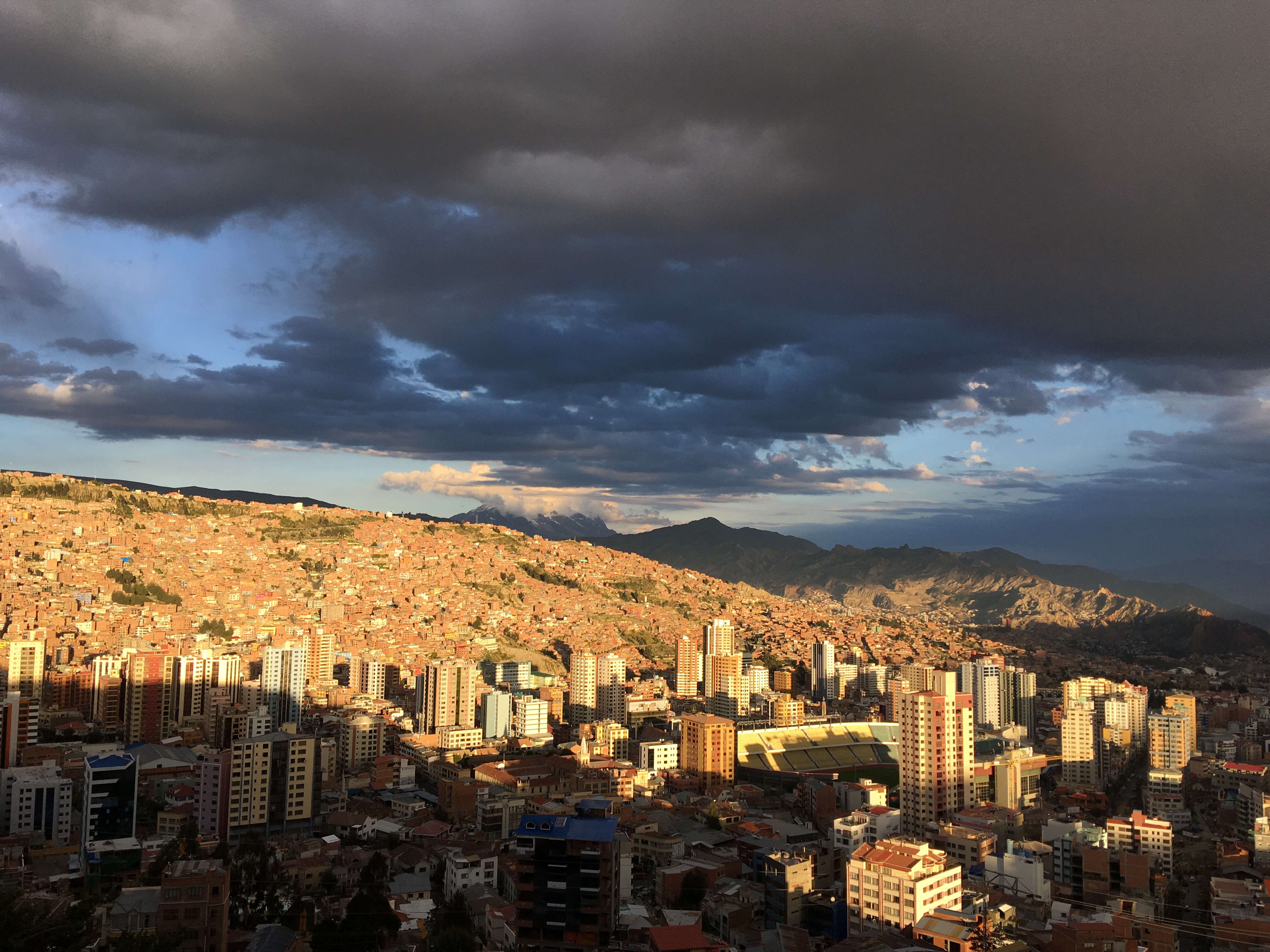 Auf 3500 Metern Höhe gelegen, ist La Paz die höchstgelegene Verwaltungshauptstadt der Welt. Dicht gedrängt stehen Häuser aneinander. Dir Straßen sind voll mit hupenden Autos und Händlern. In der Ferne trohnt der schneebedeckte 6438 Meter Hohe Illimani.