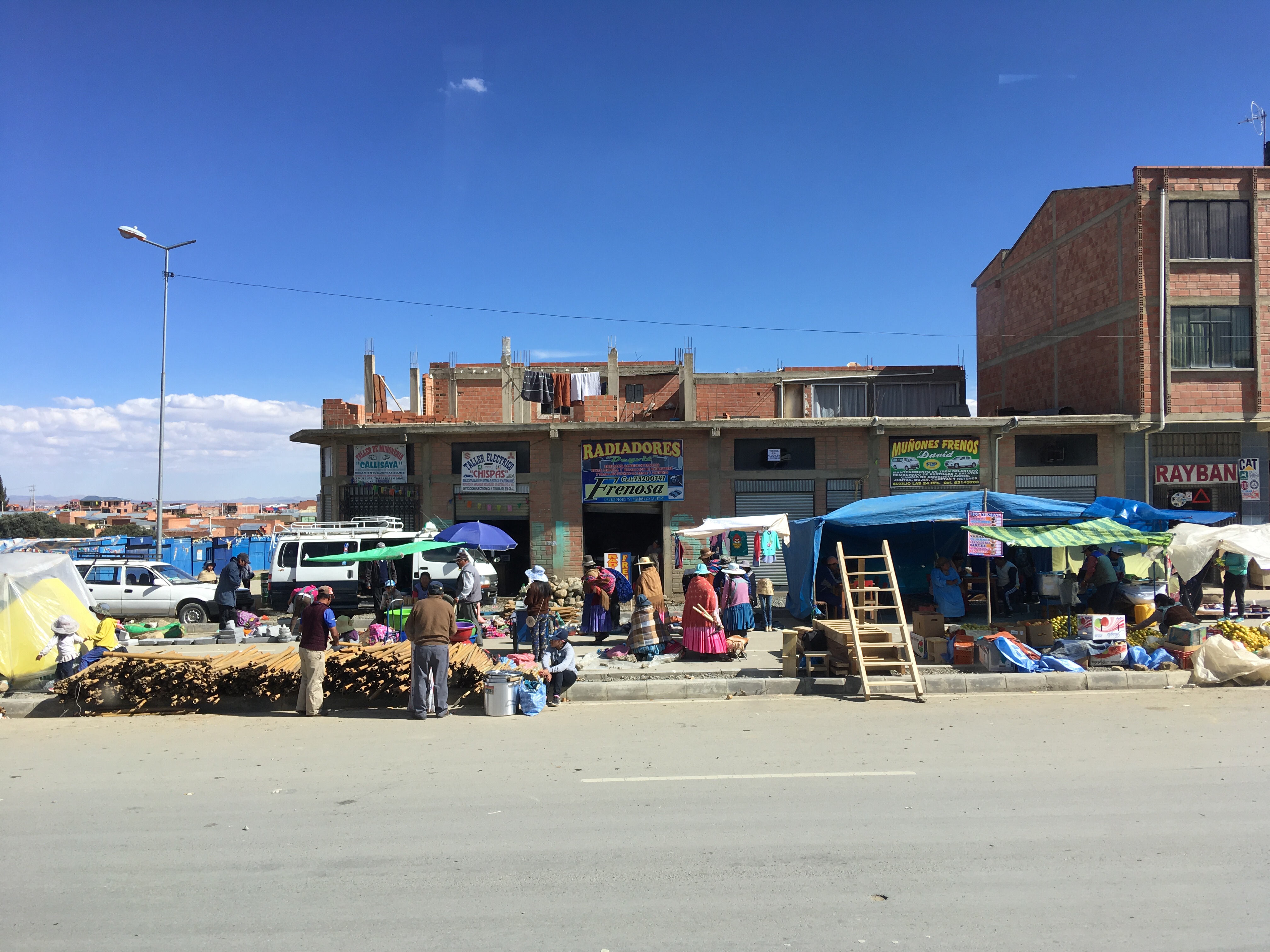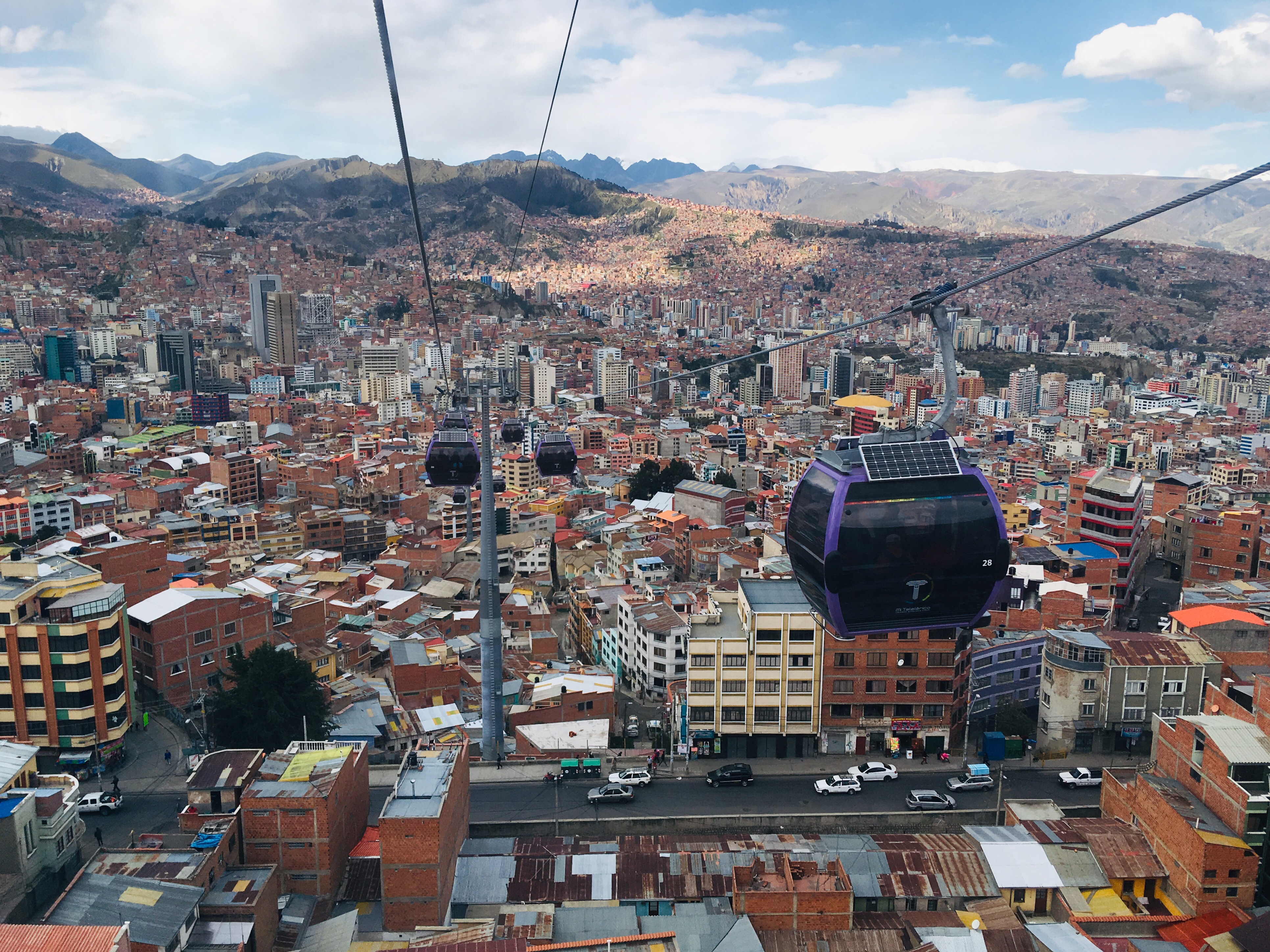 Mittlerweile geht La Paz in die auf 4000 Meter hoch gelegene Stadt El Alto fließend über. Zwischen beiden Städten verkehren seit einigen Jahren mehrere hochmoderne Seilbahnen der österreichischen Firma Doppelmeyr. Ein riesiges Streckennetz überspannt heute beide Städte. In nur 6 Minuten überwindet man vom Zentrum La Paz’ 500 Höhenmeter und kann ganz bequem einen der kilometerlangen Märkte in El Alto besuchen.